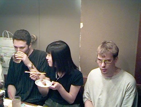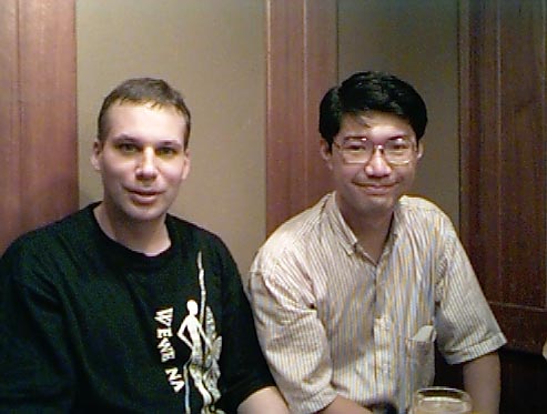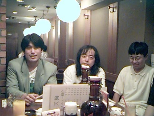 Meeting and <IMG SRC=“s980808b.jpg” WIDTH=123 HEIGHT=93 <IMG SRC=“s980808c.jpg” WIDTH=123 HEIGHT=93«/A> | 📷 Meeting photos would appear here We also voted to purchase a CD-ROM RW burner from Marcus Metzler, who in addition, provided images for Debian 2 which we hope to clone for the next nomikai. The CDRom burner is now available to anyone for use in providing the group with software distributions ... CD to burn? call Jonathan Byrne :-) Special thanks to Gaspar Sinai for the loan of his Dec Alpha, Takeshi Hakamada for bringing the SGI Indy, Chris Sekiya for the Amiga 3000 and Tim Meggs for bringing the Mac "boilermaker". Thanks also to Shigeo Honda for again organizing the food and beverages, and Jonathan Byrne for organizing the library. Best surprise of the meeting: Jonathan's 5000 yen Sparc 2, labeled as defective at the store, booted as soon as memory was added! In addition there were free-take-as-many-as-you-can-carry 10baseT ethernet cables, power cables, UK power cables(!!), brass screws(!?!?) and other odds and ends at the door for all. The Tengu nijikai was a gathering of minds, mostly in a foggy state, and was a lot of fun. What was in those shooters, Tim? :-) |