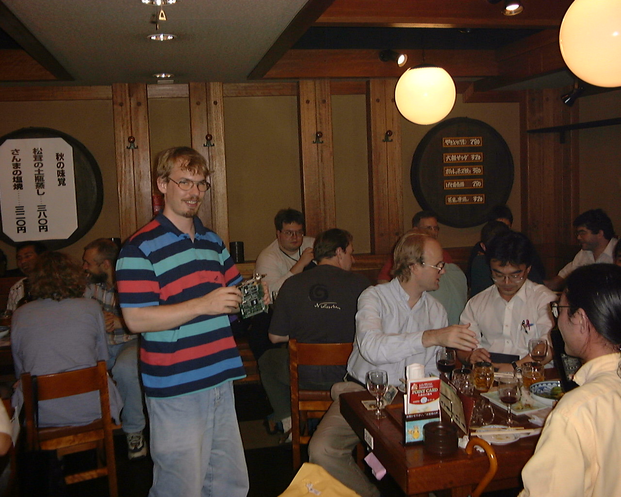 | Date: | September 188, 1998 | | Nomikai Meeting Place: | Tengu Tokyo EkiMae | | Nomikai Time: | 19:30 | | Nomikai Place: | Tengu Tokyo EkiMae, Kyobashi 1-1-6, EchiZenYa Bld. B1/B2, Chuo-ku, Tokyo Phone: 03-3275-3691